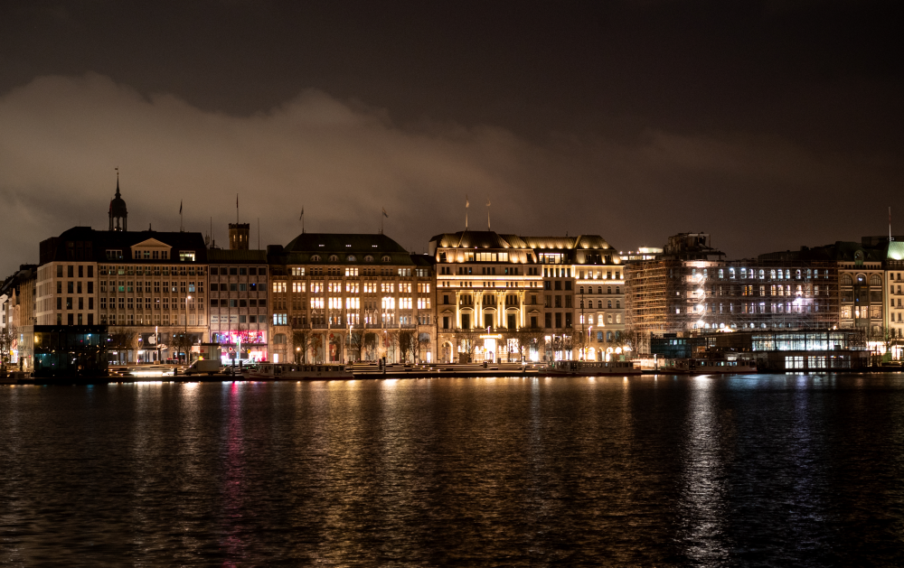 View of the Inner Alster, or Binnenalster in Hamburg, Germany Tuesday, March 31, 2026.