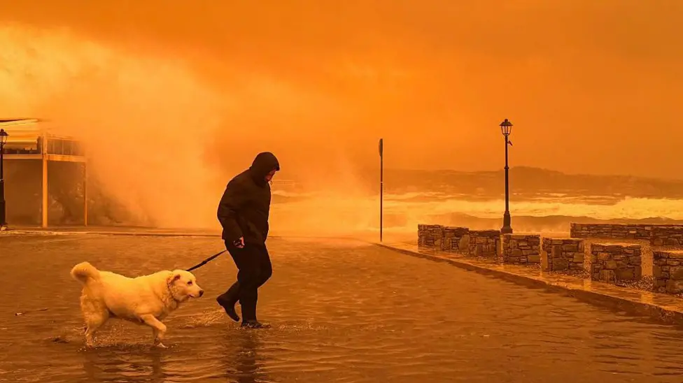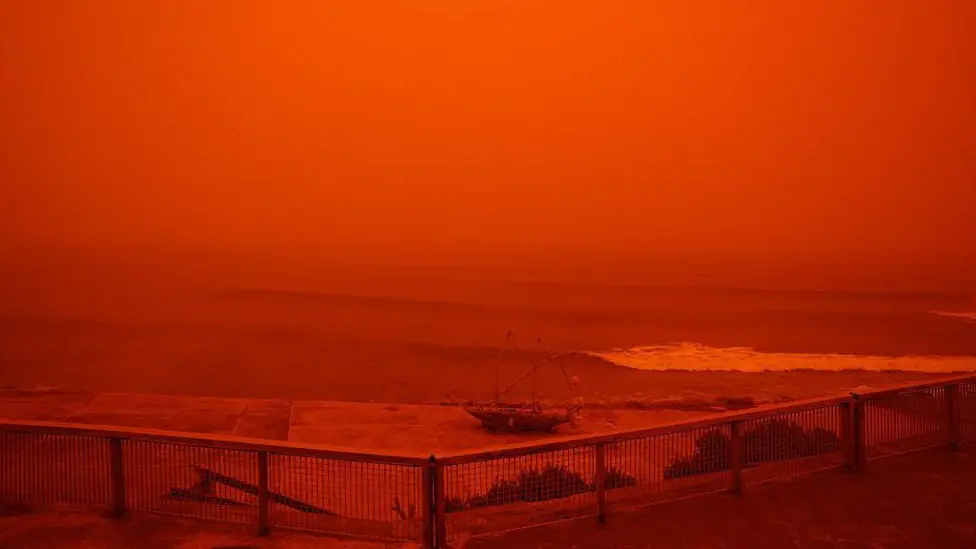 Saharan dust storm Crete red sky 2026 has created dramatic atmospheric conditions across parts of Greece, as strong winds carried dust from North Africa, turning the skies deep red and orange.